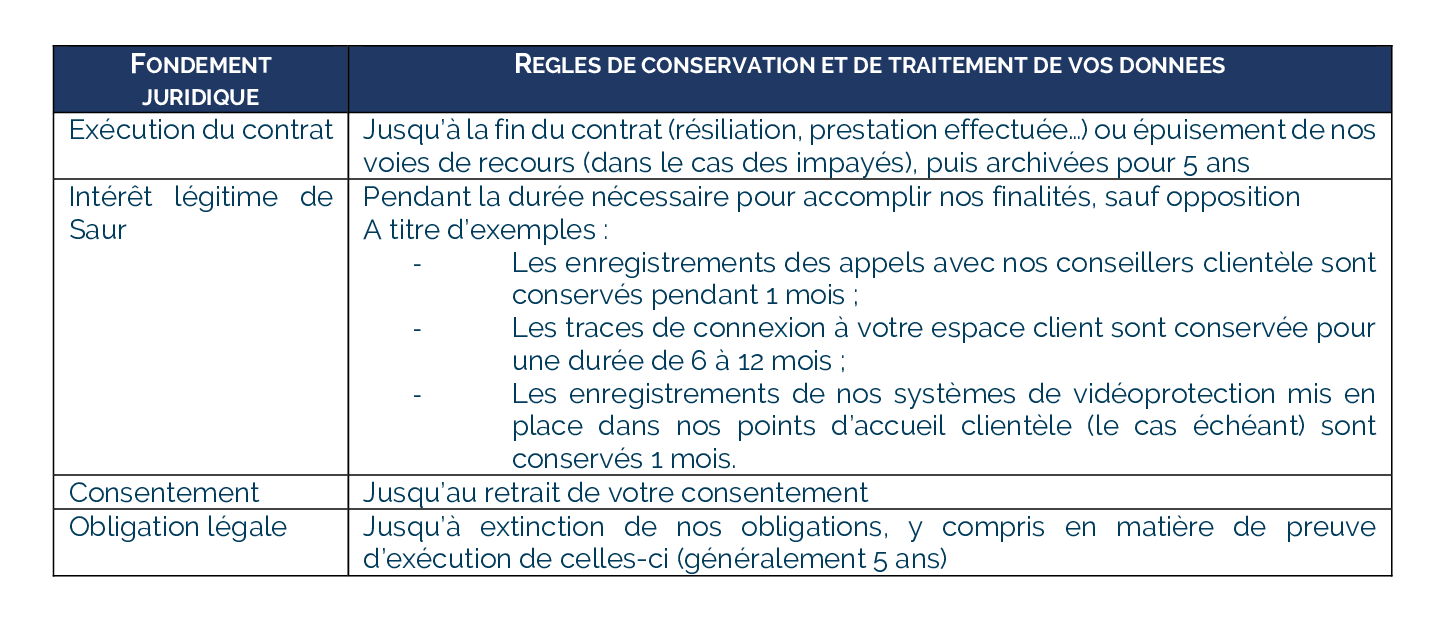 - par courrier : SAUR S.A.S., à l’attention du Délégué à la Protection des Données, 11 chemin de Bretagne 92130 Issy-les-Moulineaux